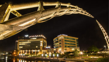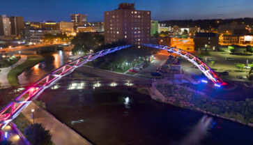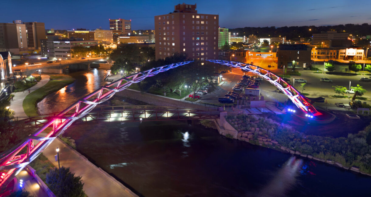 Imagine, they said, a family visiting downtown. They could start with a tour of SculptureWalk, at the southern end of downtown. A bit of walking, and they’re passing the Arc of Dreams, spanning the Big Sioux River. Keep going, and they can play (or skate) at Jacobson Plaza, or let their dog run at the dog park there. If it’s the summer, they can stop at the Levitt at the Falls for a free concert.